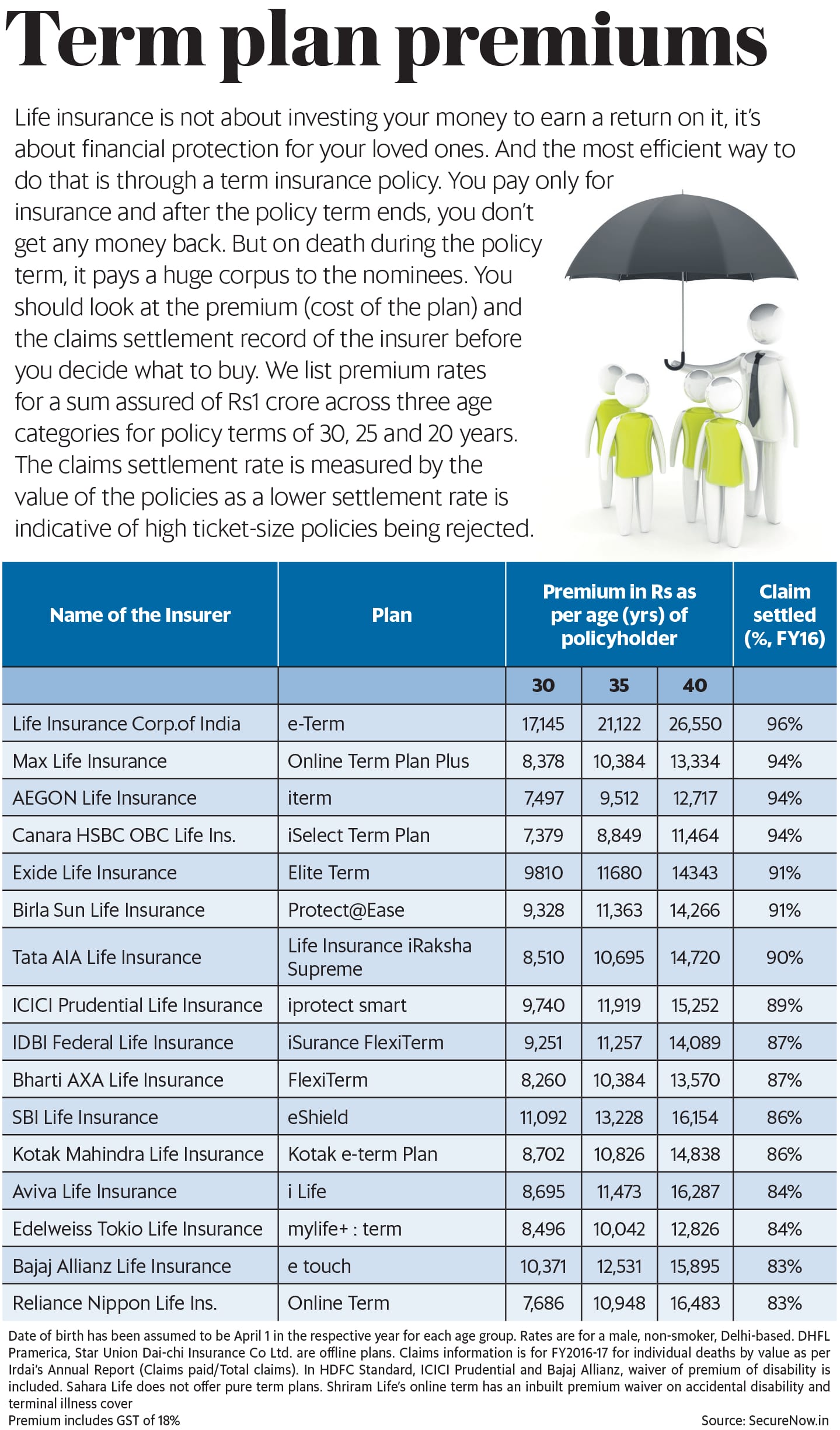 Unlike other, more complex and sophisticated insurance products, a term plan is a commodity. By and large, its features do not vary across insurers and it all boils down to the lowest premium. However, zeroing in on the cheapest plan is possible only if you have done adequate window shopping and compared the premiums of all the 8-9 companies that offer online term plans. Some buyers believe that a certain company with a higher claims ratio is a better option, but this may not be true. "Comparing term plans is not difficult as most policies have the same features, but it becomes difficult with health policies, as you need to dig out more information, such as hospital network and exclusion clauses," says Deepak Yohannan, CEO, MyInsuranceClub.com.